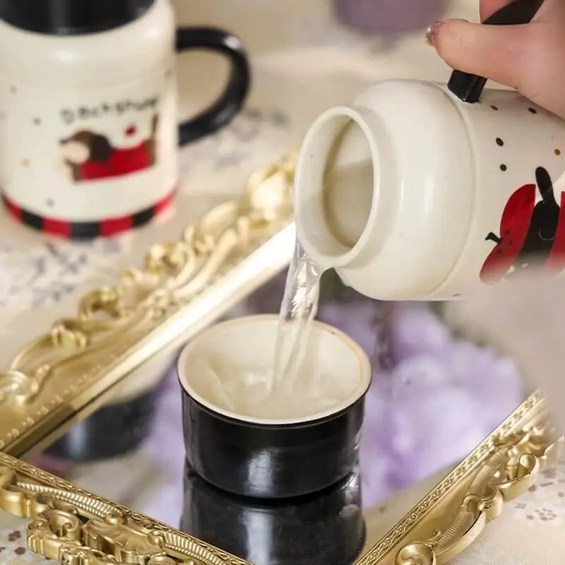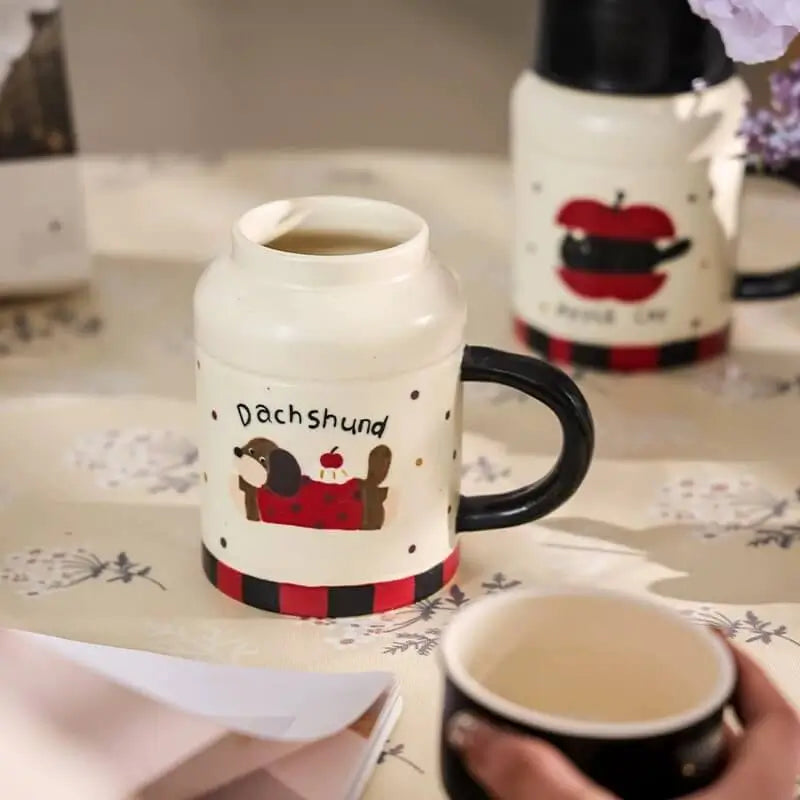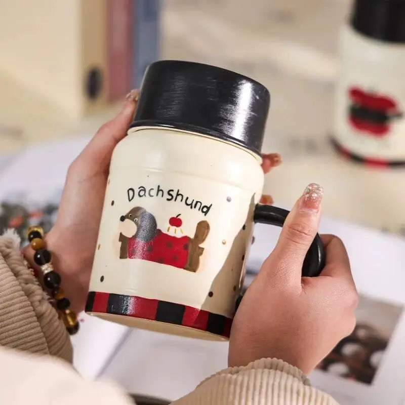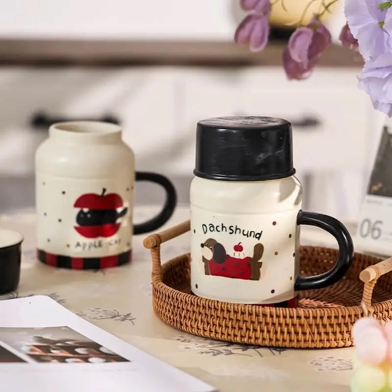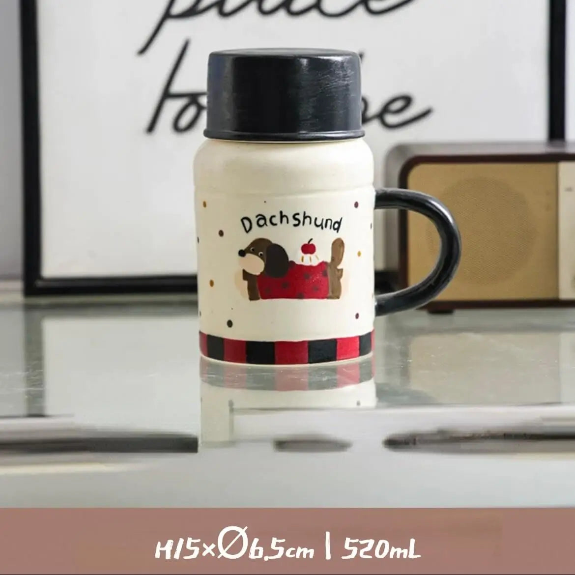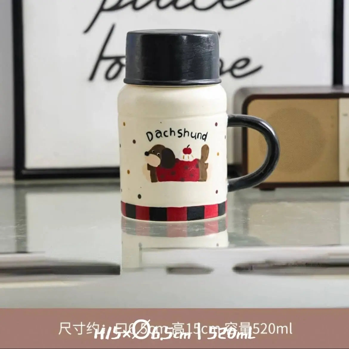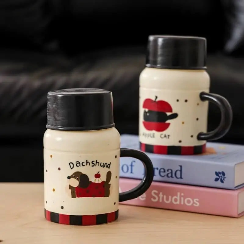 Cartoon Lidded Tumbler, Large Ceramic Water Cup